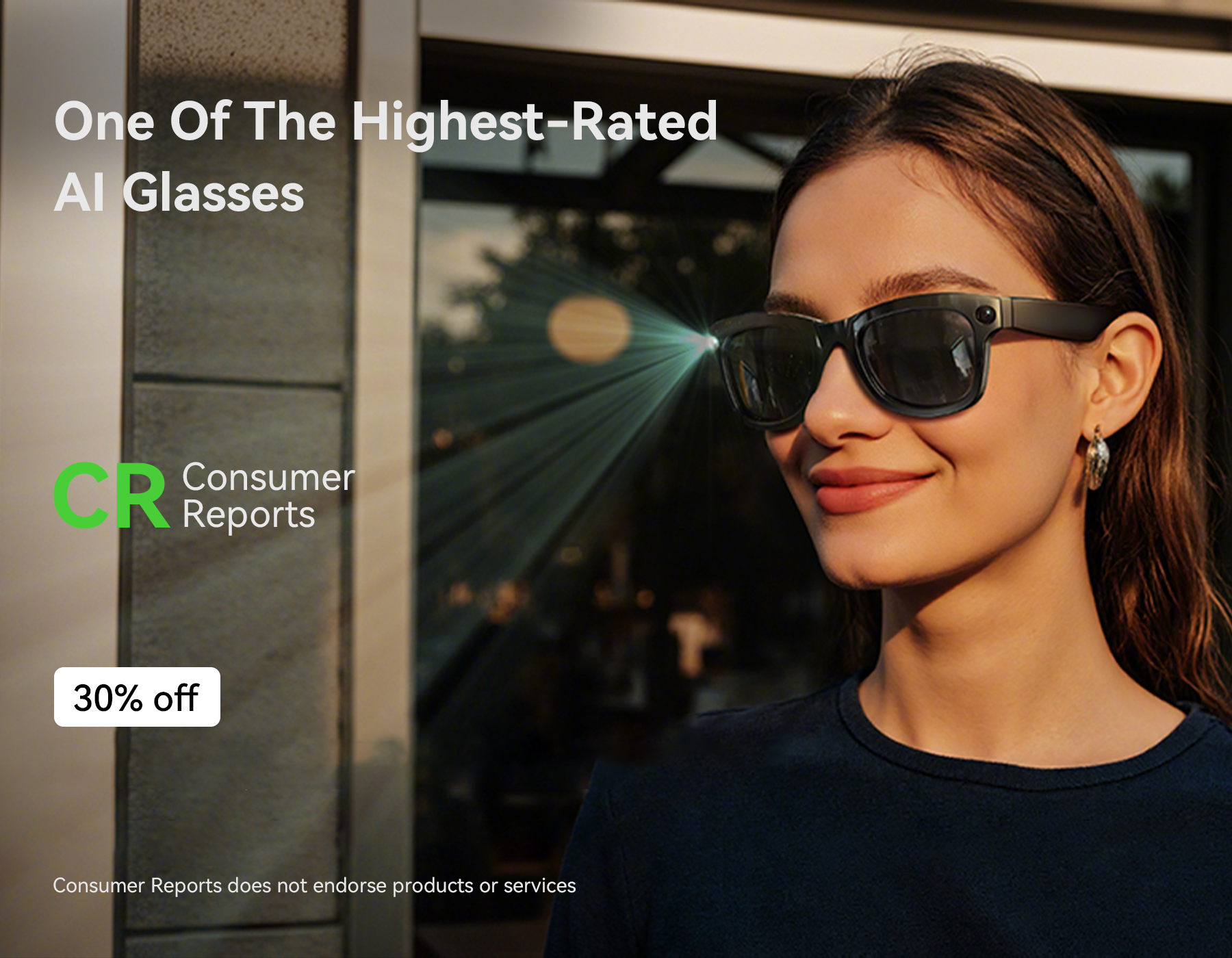 Designed for all-day comfort,Venloria smart glasses weigh just 43g (0.09lb)—so light, they become a natural extension of you.Venloria ultra-light TR90 frames and titanium hinges provide a secure, pressure-free fit that’s perfect for any head shape. The result? Effortless comfort that lasts from morning to night.
